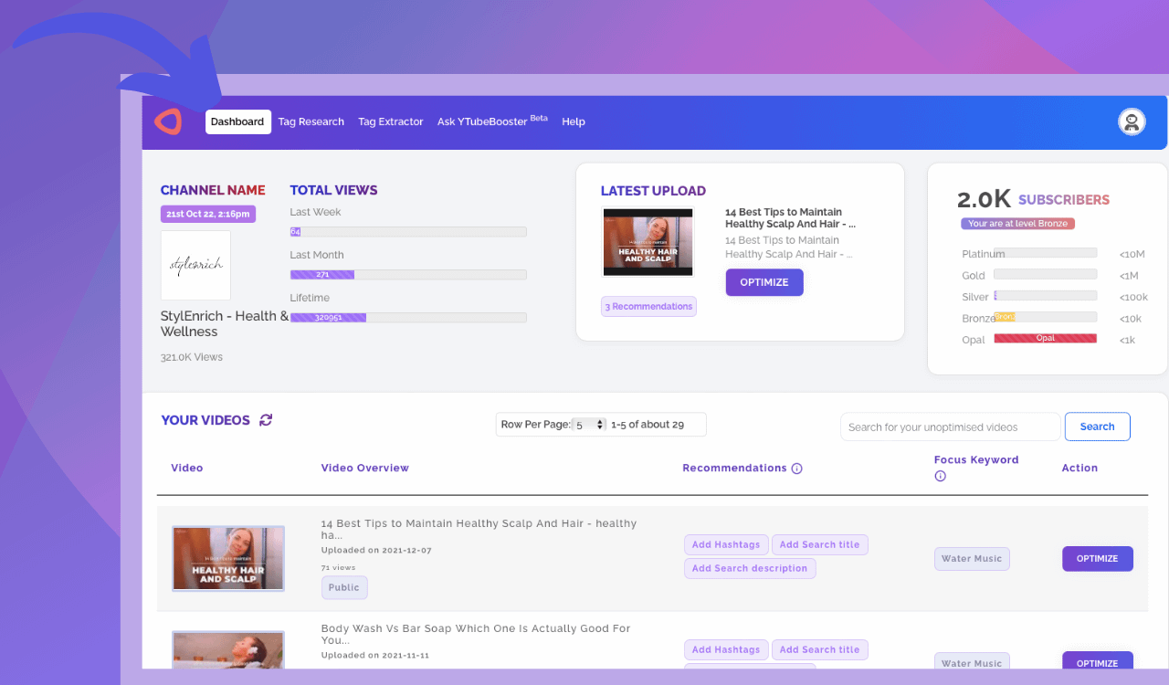YTube Booster is an optimization tool designed specifically for YouTube creators. Its main goal is to improve your channel’s SEO rankings and enhance your overall workflow. By utilizing the features offered by YTube Booster, you can increase your chances of ranking higher in YouTube searches, reaching a wider audience, and ultimately growing your channel.